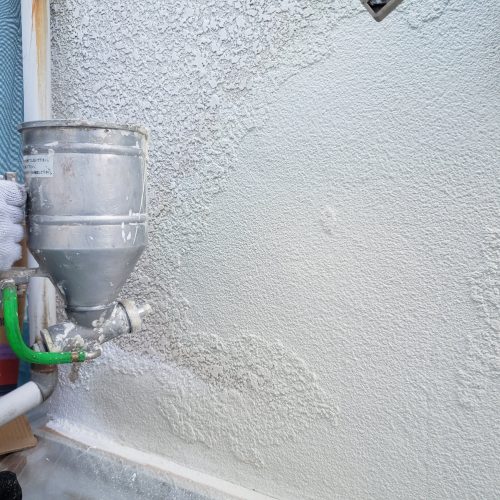 劣化してしまった外壁を剥がしています。皮すきなどで叩くと軽い音がして密着不良を起こしています。